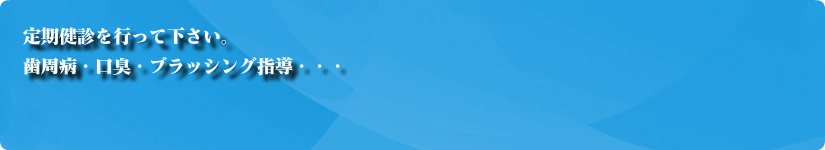 定期的に健診を受けましょう。お口の病気はむし歯だけでなく、歯肉やあご・神経など、また歯周病においては糖尿病や心筋梗塞などの因果関係もありますので、お早めにご相談下さい。